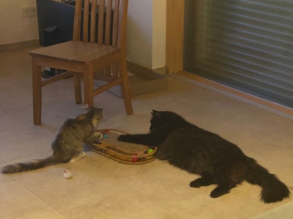 Nicky meldete sich sehr schnell auf unsere Anfrage und nach Ausfüllen der von ihr übersandten Fragebögen konnte auch zeitnah ein Termin bei uns zu Hause vereinbart werden. Hier brachte Nicky viele unterschiedliche Spielzeuge mit. Mit ihrer behutsamen und geduldigen Art konnte sie sehr schnell das Vertrauen unserer beiden Fellnasen gewinnen und mit ihnen spielen.
