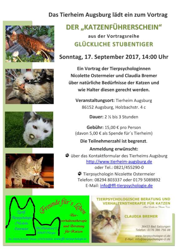Vortrag im Tierheim Augsburg: "Der Katzenführerschein"
